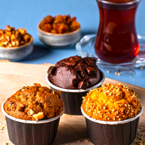 Kek miksi, yumurta, tereyağ, parça çikolata. Glüte...